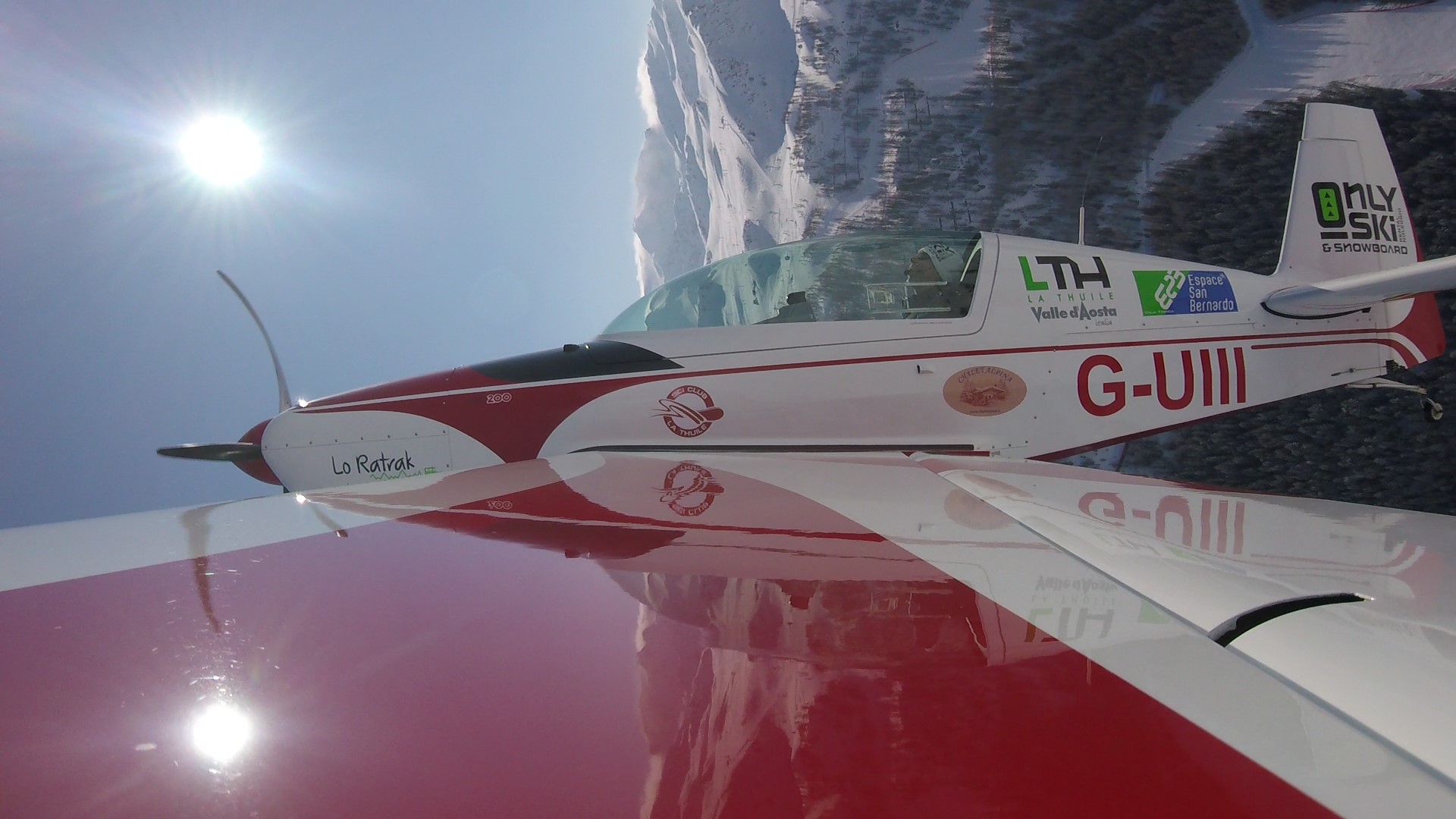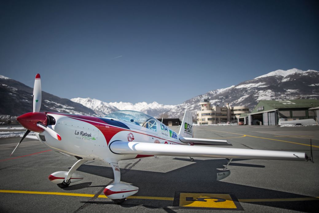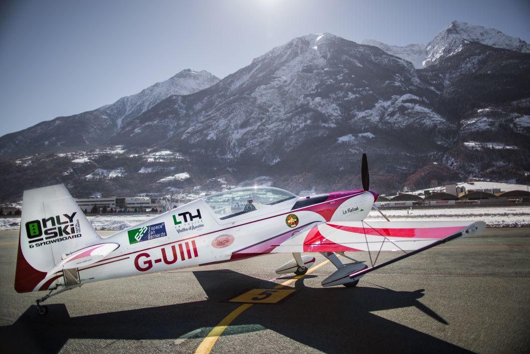 The aircraft is an Extra 200. It’s an advanced, two seat, high performance, aerobatic aircraft designed by famous aircraft designer Walter Extra. His aeroplanes are used world-wide and flown in aerobatic competitions, displays, and pilon racing (like the Red Bull Air Race).